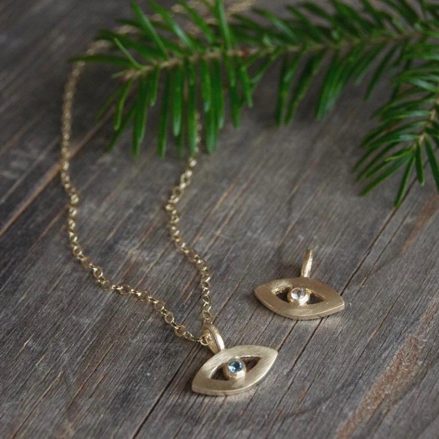 Eye amulets are said to ward off evil and protect the wearer from harm. Our version has your choice of gemstone set in the center. The sterling silver amulet measures approx. 1/2 wide and comes on a 16 fine gauge sterling rolo chain.